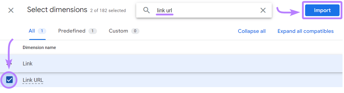 Then, click "Import" to add it to your custom event report.